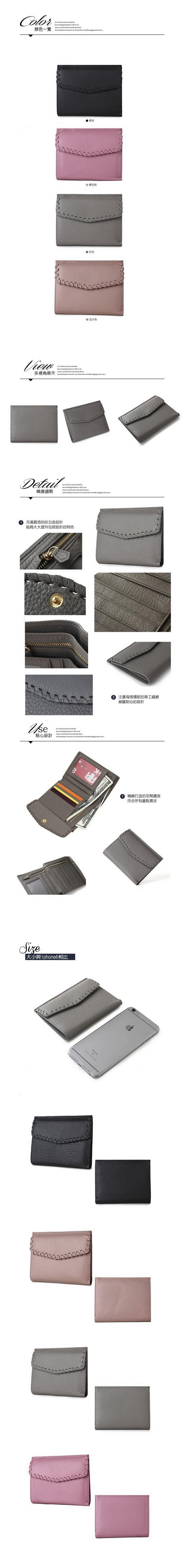 【KANDI】素雅編織邊中短牛皮夾",